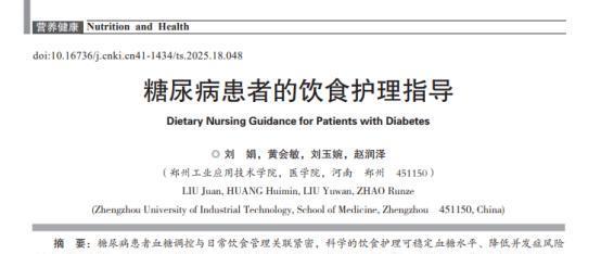 糖尿病患者的饮食护理指导,刘娟,现代食品,2025-09-28