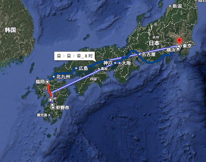 ▲虾野市到东京的距离,相当于北京到上海