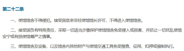 ▲此事件日本违反了《维也纳外交关系公约》